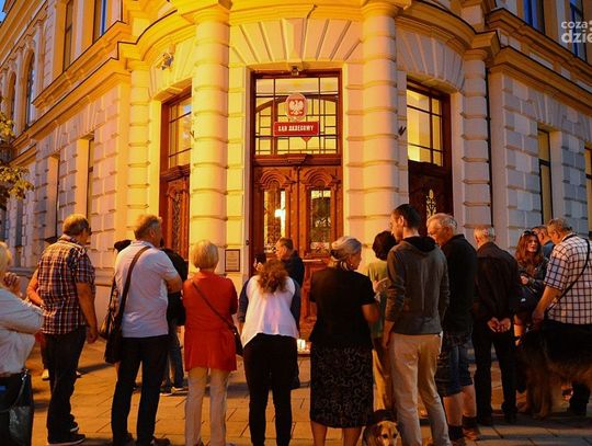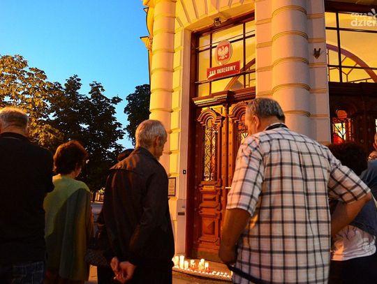 Protest przeciwko procederowym zmianom w sadownictwie przed budynkiem Sądu Okręgowego