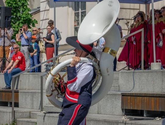Przemarsz Radomskiej Młodzieżowej Orkiestry Dętej Grandioso i Młodzieżowej Orkiestry Dętej Miasta Zwolenia oraz odśpiewanie "Ody do Radości"