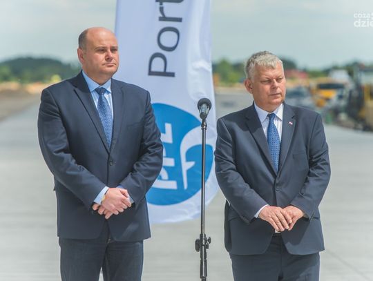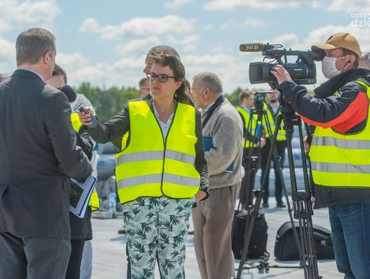 Konferencja prasowa na pasie startowym lotniska (zdjęcia)