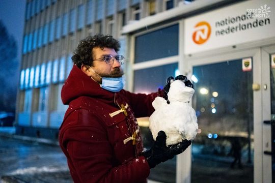 Zdjęcie: Protest Kobiet - Lepienie wielkiej kaczki ze śniegu...
