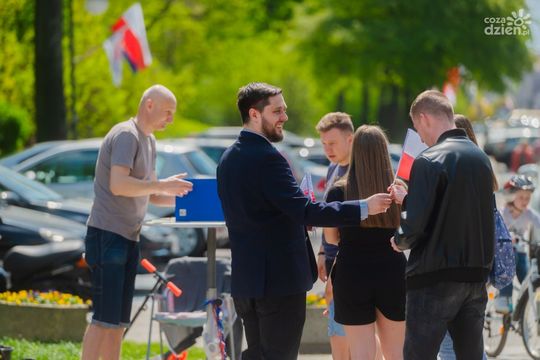 Działacze Konfederacji Korony Polskiej rozdawali flagi (zdjęcia)
