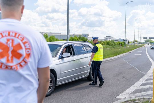 Ratownicy rozdają kierowcom apteczki (zdjęcia)