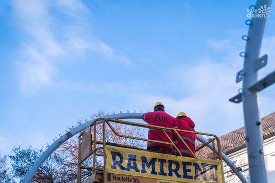 Montaż tunelu świetlnego na Żeromskiego (zdjęcia)