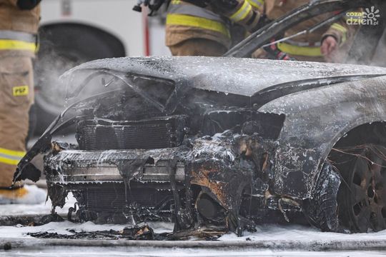Pożar samochodu pod marketem na Ustroniu (zdjęcia)