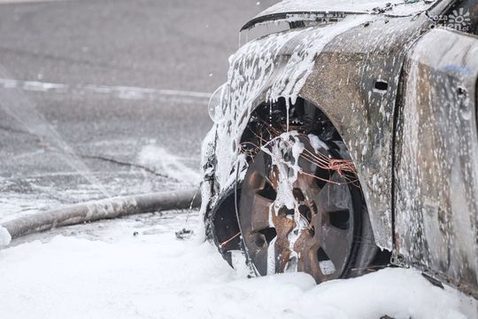 Zdjęcie: Pożar samochodu pod marketem na Ustroniu (zdjęcia)