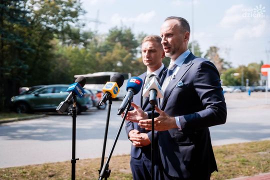 Konferencja Roberta Bąkiewicza i Janusza Kowalskiego przed elektrownią w Kozienicach (zdjęcia)