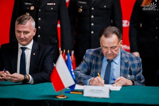 Zdjęcie: Podpisanie umów na samochody strażackie dla pow. pr...