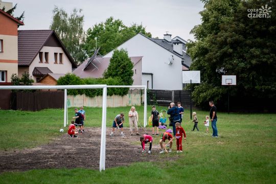 Sianie trawy na boisku przy ulicy Pawiej (zdjęcia)