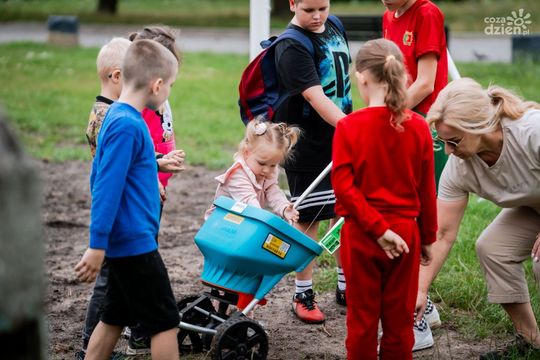 Sianie trawy na boisku przy ulicy Pawiej (zdjęcia)