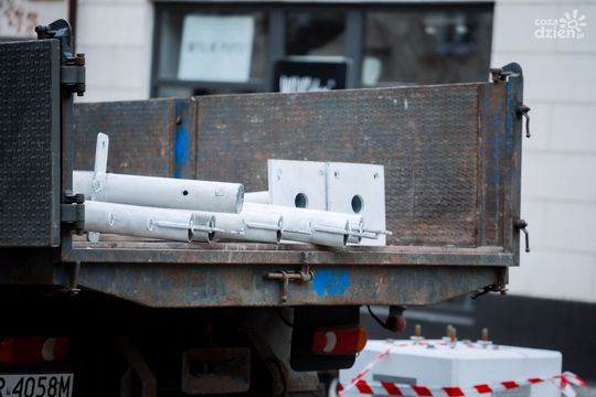 Budowa tunelu świetlnego na ul. Żeromskiego oraz montaż ozdób świątecznych (zdjęcia)