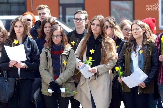 "Początek Księgi III" - happening przygotowany przez uczniów VI LO im. J. Kochanowskiego na placu po synagodze przy ul. Podwalnej