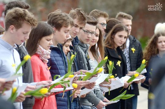 "Początek Księgi III" - happening przygotowany przez uczniów VI LO im. J. Kochanowskiego na placu po synagodze przy ul. Podwalnej