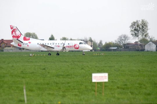 Samolot SprintAir na lotnisku w Radomiu