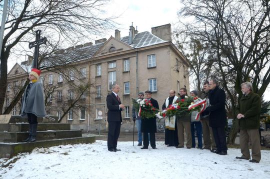 Złożenie kwiatów w rocznicę postawienia Krzyża Straceń Powstańców Styczniowych
