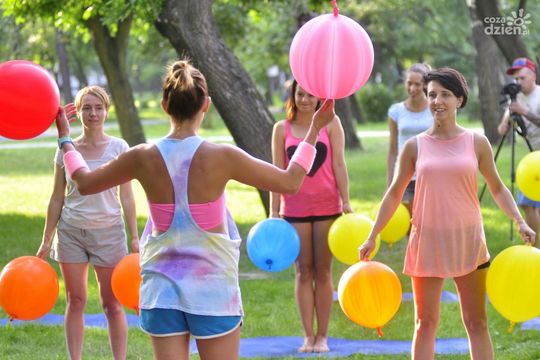 Trening z balonami w parku na Plantach