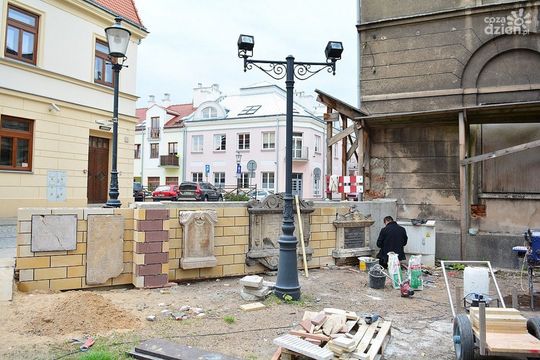 Prace przy ogrodzeniu placu wokół Fary
