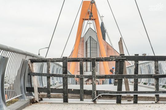 Zdjęcie: Montaż tłumików na kładce na Szarych Szeregów