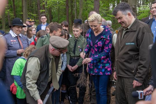 Agata Kornhauser-Duda wraz z leśnikami, przedstawicielami lokalnych służb i uczniami lokalnych szkół wzięła udział w Święcie Lasu.