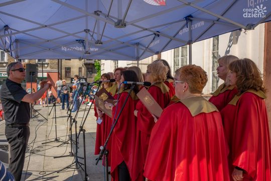 Przemarsz Radomskiej Młodzieżowej Orkiestry Dętej Grandioso i Młodzieżowej Orkiestry Dętej Miasta Zwolenia oraz odśpiewanie "Ody do Radości"