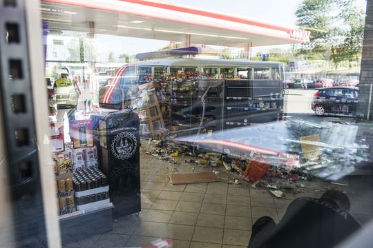 Zdemolowana stacja i przystanek przy dworcu PKP