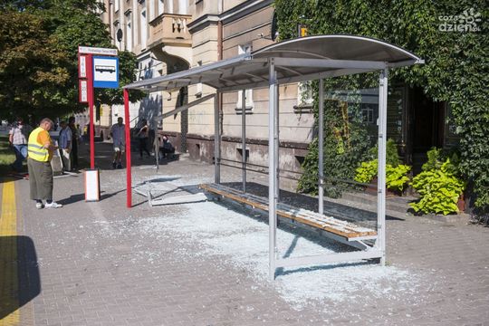 Zdemolowana stacja i przystanek przy dworcu PKP
