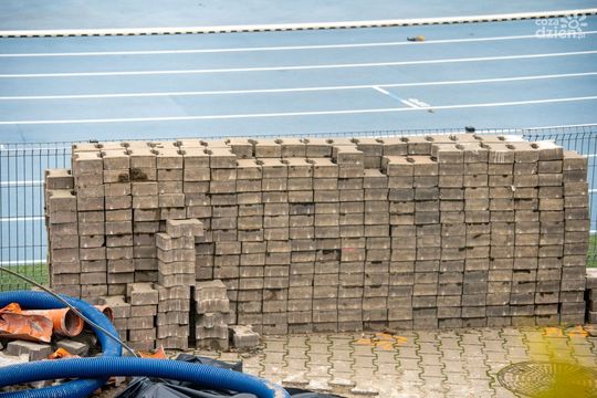 Zdjęcie: Trwa montaż oświetlenia na stadionie przy Narutowic...